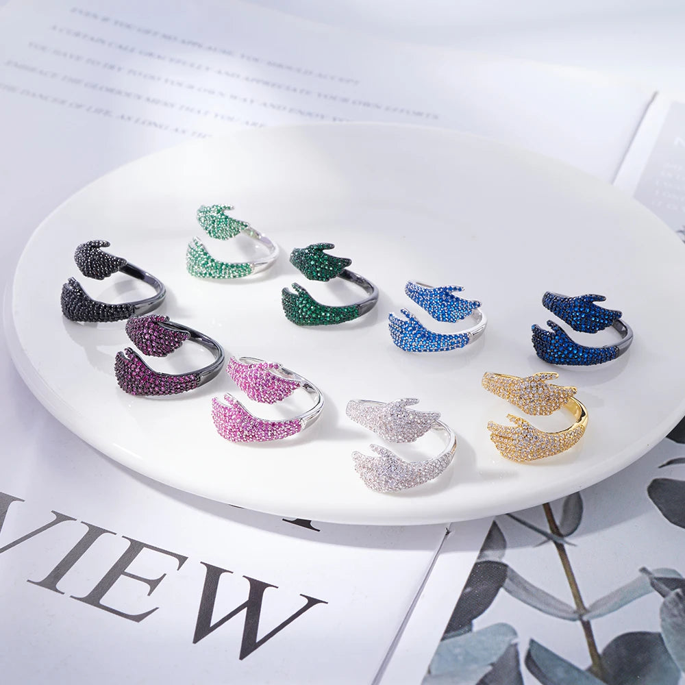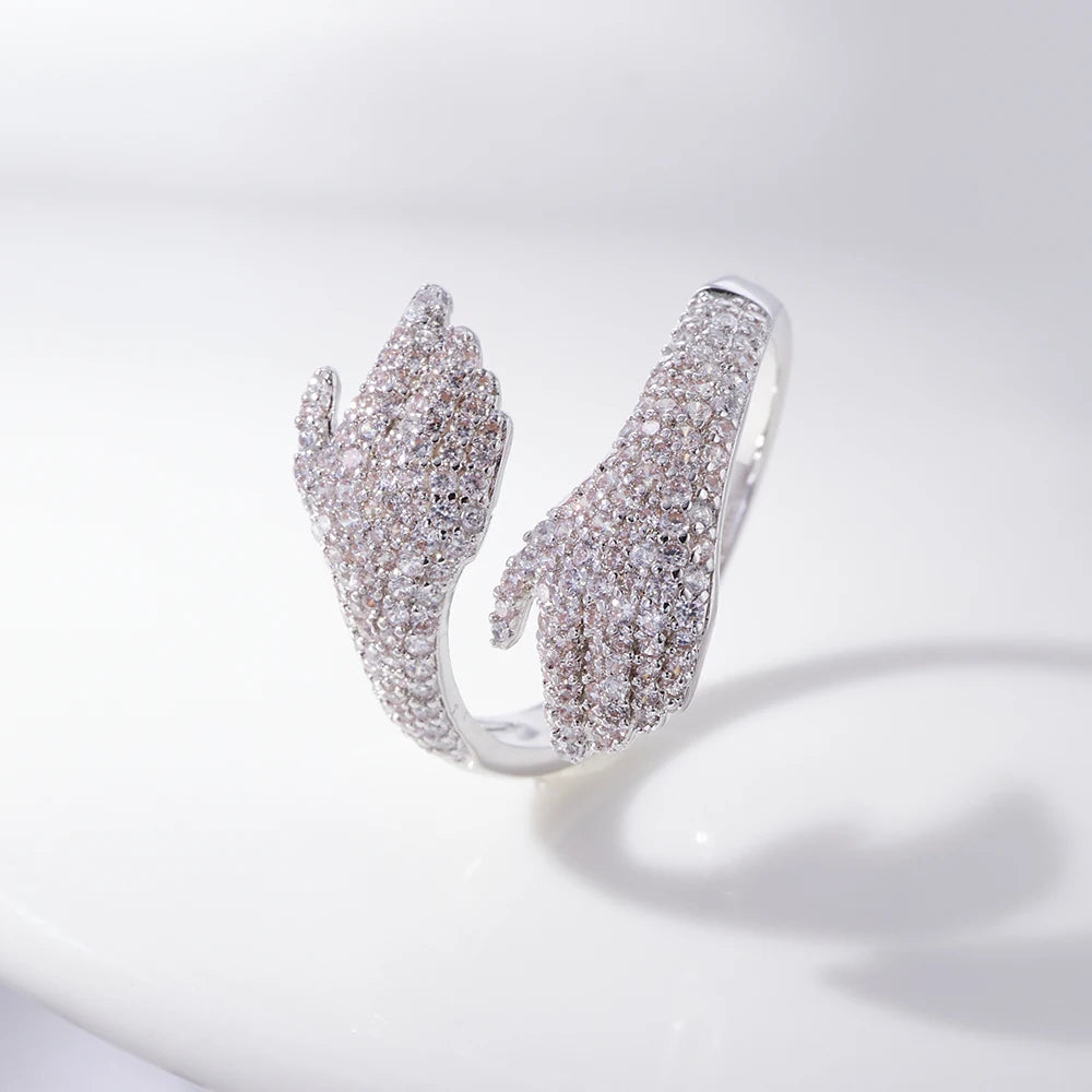 Due mani si incontrano e si chiudono dolcemente attorno al dito, creando un abbraccio prezioso fatto di micro-zirconi scintillanti. Ogni dettaglio è scolpito con cura, dalla curva delle dita alla superficie brillante, per evocare protezione, eleganza e presenza. Il design aperto dona carattere e modernità, mentre la trama di pietre incastonate cattura la luce con una brillantezza profonda e ricca. Disponibile in diverse varianti, Avolta mantiene sempre la sua identità inconfondibile: un gesto che diventa gioiello, un abbraccio che diventa stile. Indossarlo non significa adornarsi: