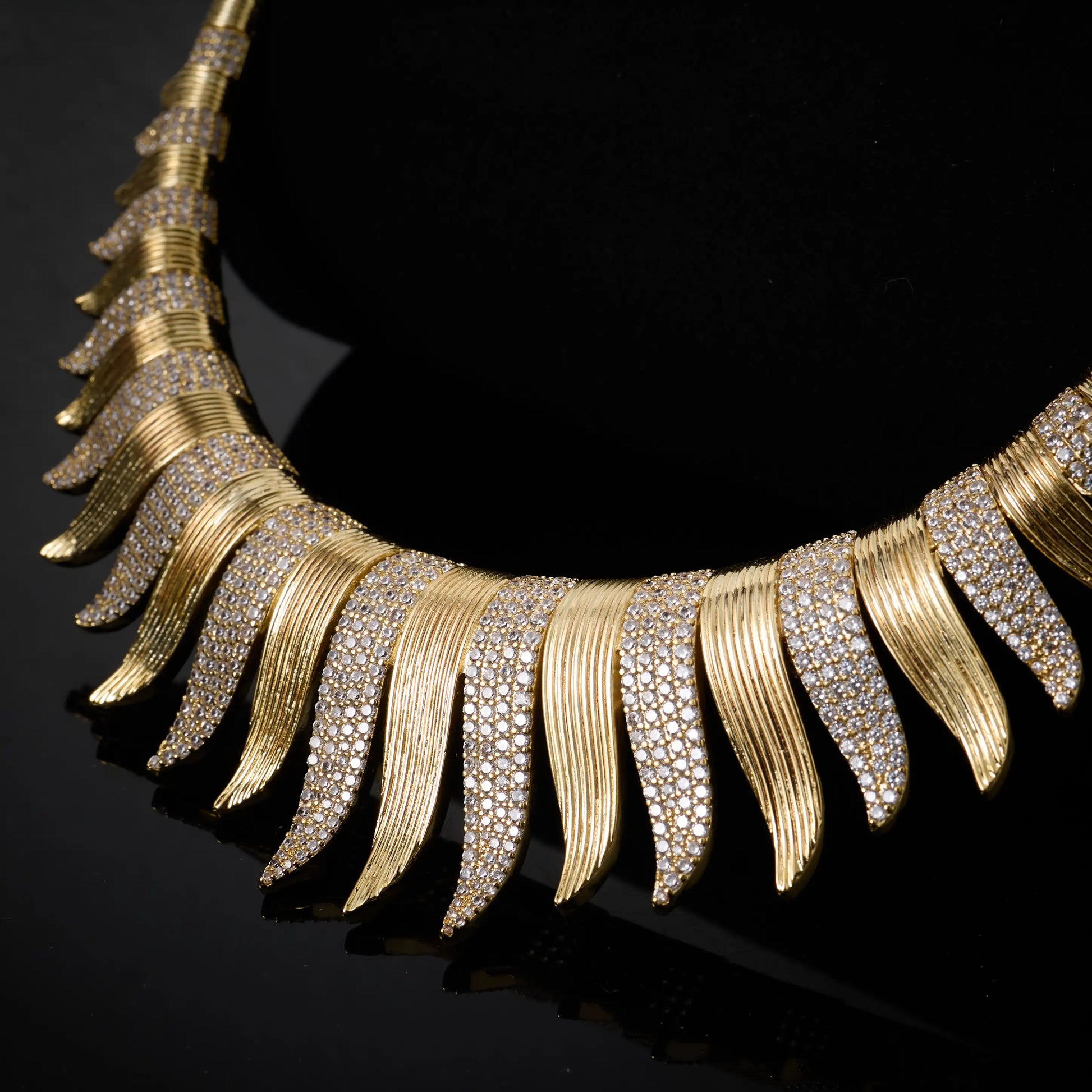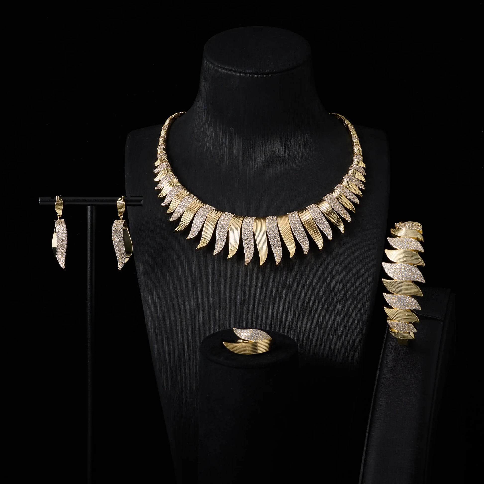 La collezione riprende la silhouette delle piume cerimoniali, simbolo di potere e protezione nelle culture faraoniche, trasformandole in gioielli luminosi dal carattere moderno. Ogni elemento del set è composto da una successione di elementi affusolati, finemente lavorati e impreziositi da micro-zirconi, che creano un gioco di luce scenografico e irresistibile. La collana incornicia il collo come un pettorale regale, gli orecchini scendono con autorità, il bracciale accompagna il movimento con eleganza e l’anello diventa un sigillo di potere. Disponibile in diverse varianti, Egizia mantiene sempre la sua identità: un’estetica iconica, decisa, profondamente regale.